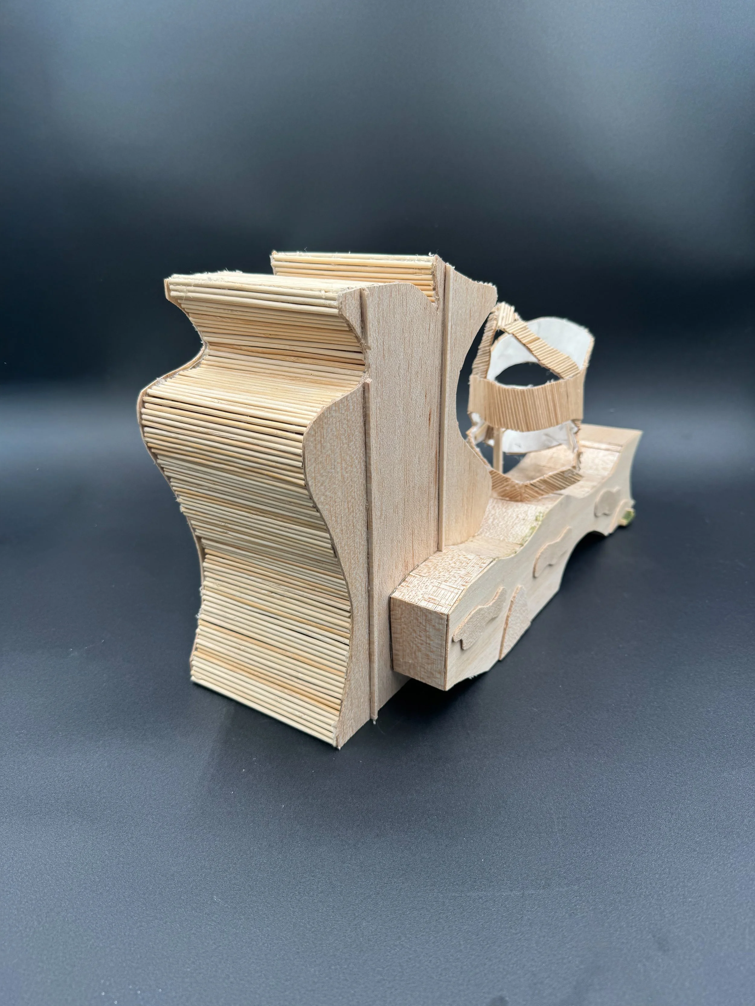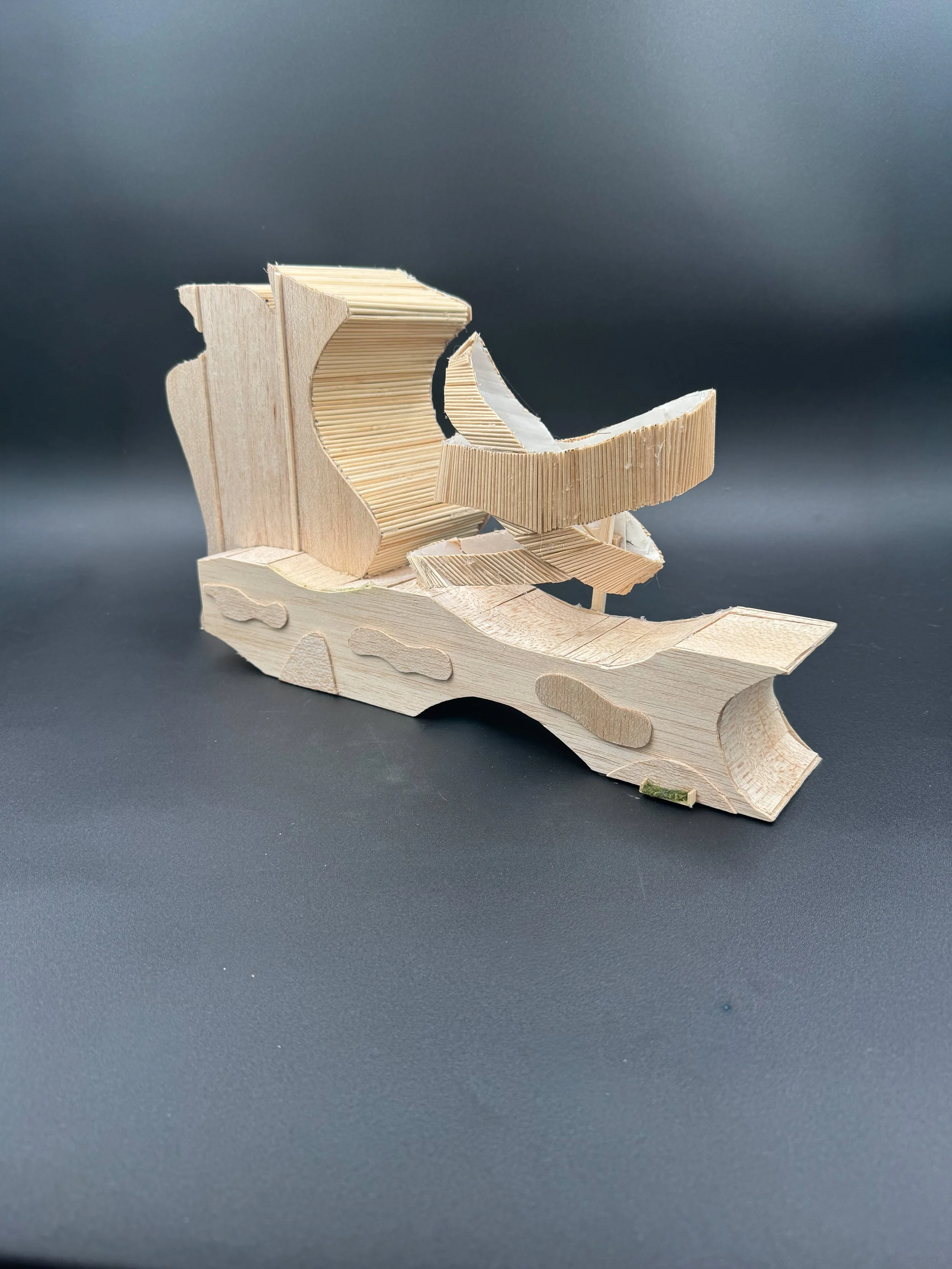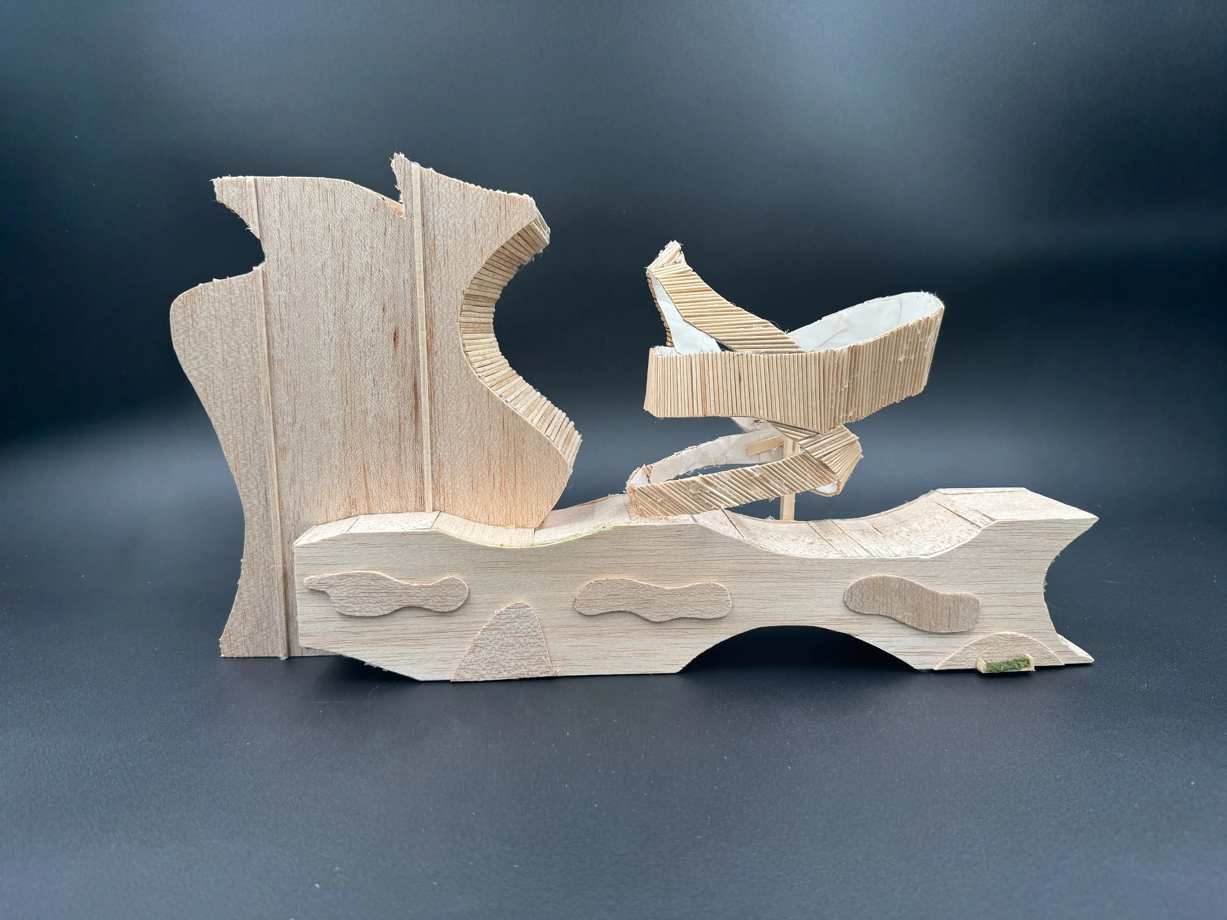 For this project, we explored deconstructivist architecture by designing a conceptual Guggenheim inspired museum. The process involved developing initial sketches to experiment with fragmented forms and dynamic geometry, followed by constructing a physical model to test structure, spatial flow, and visual impact.