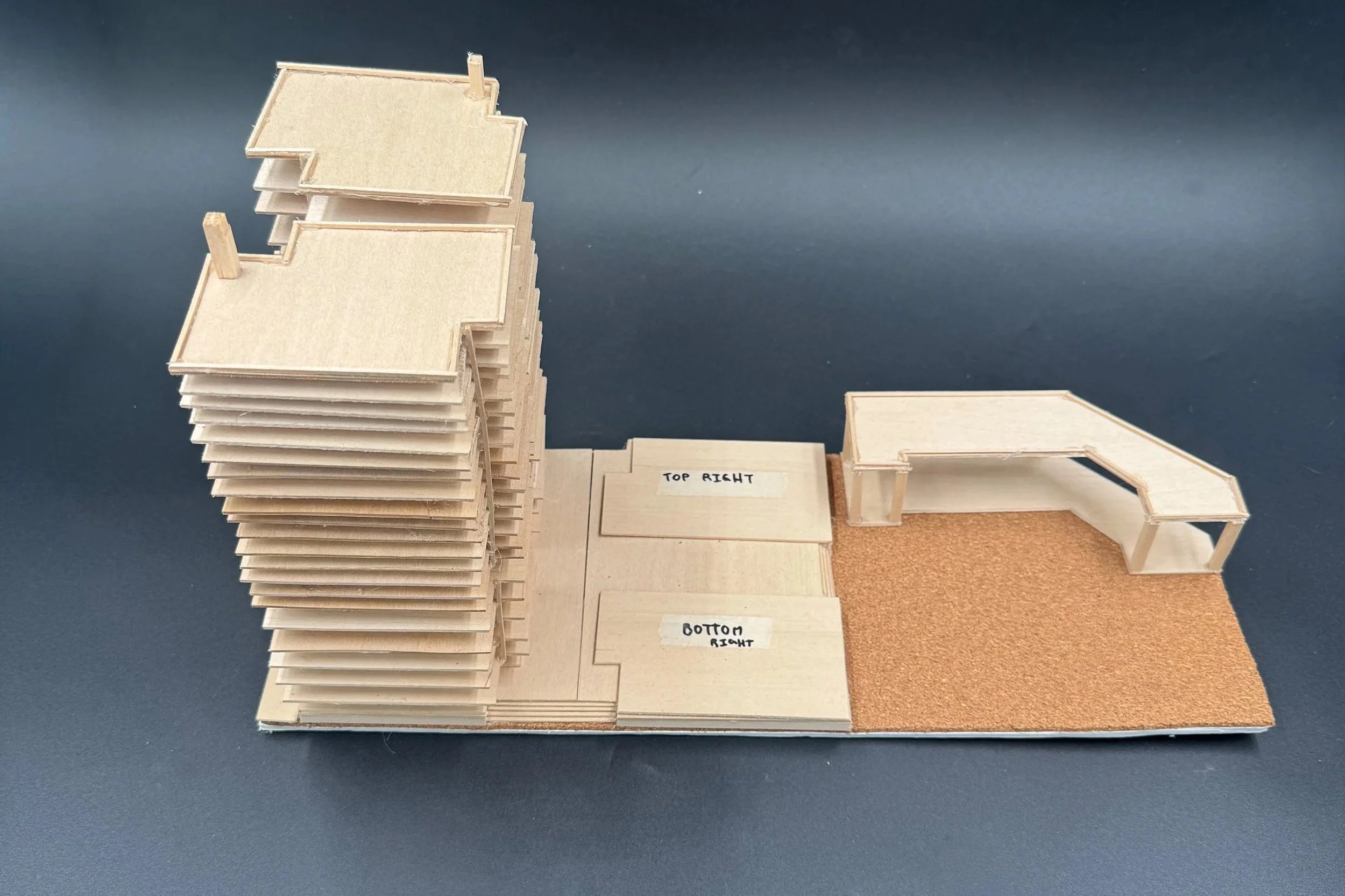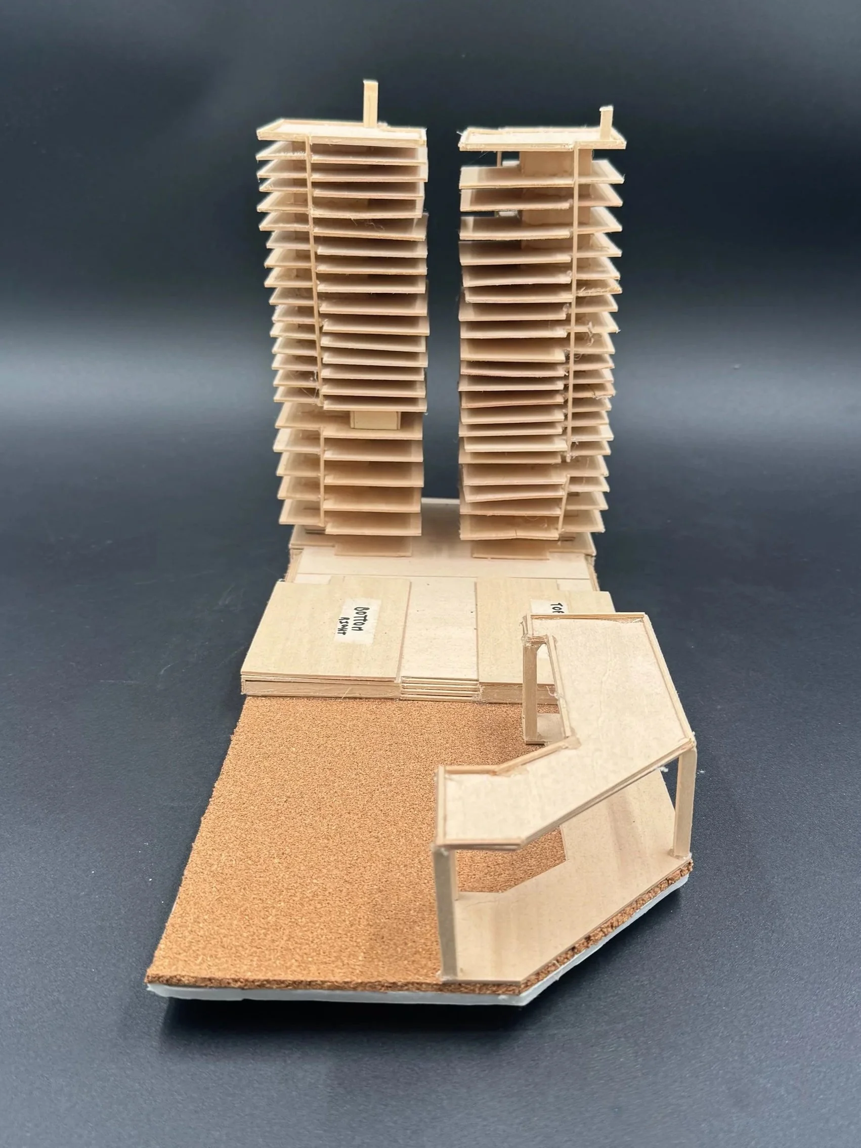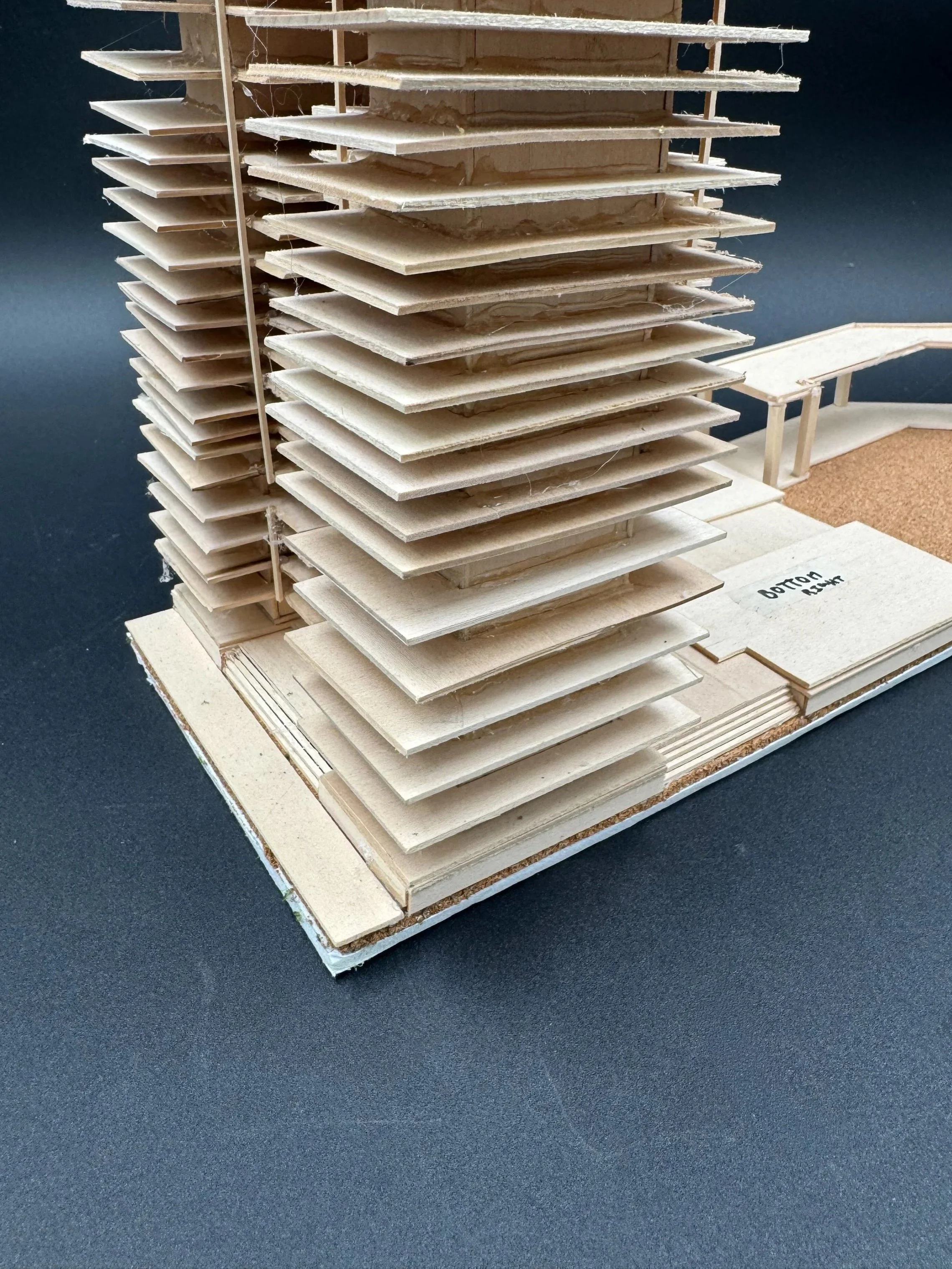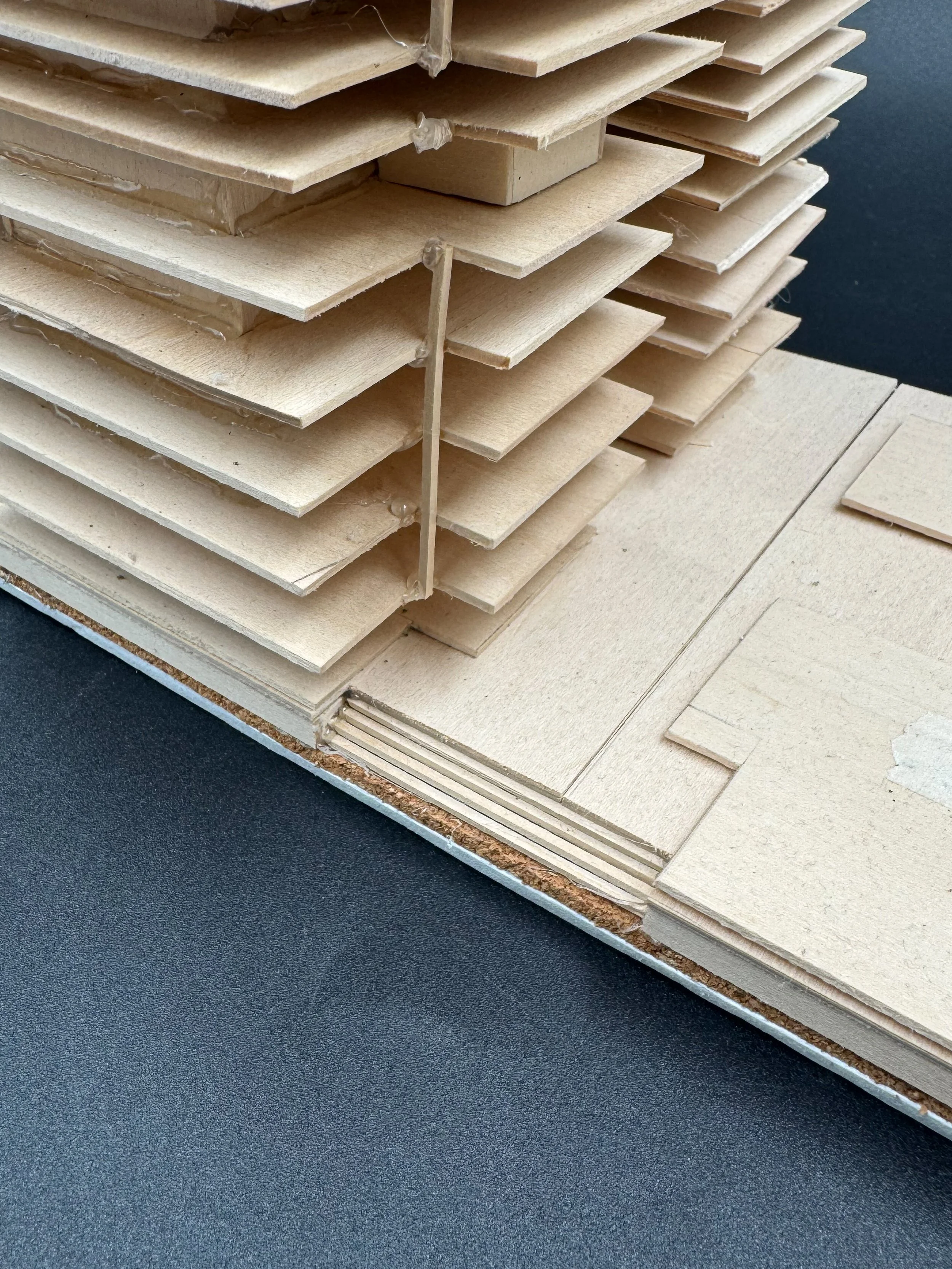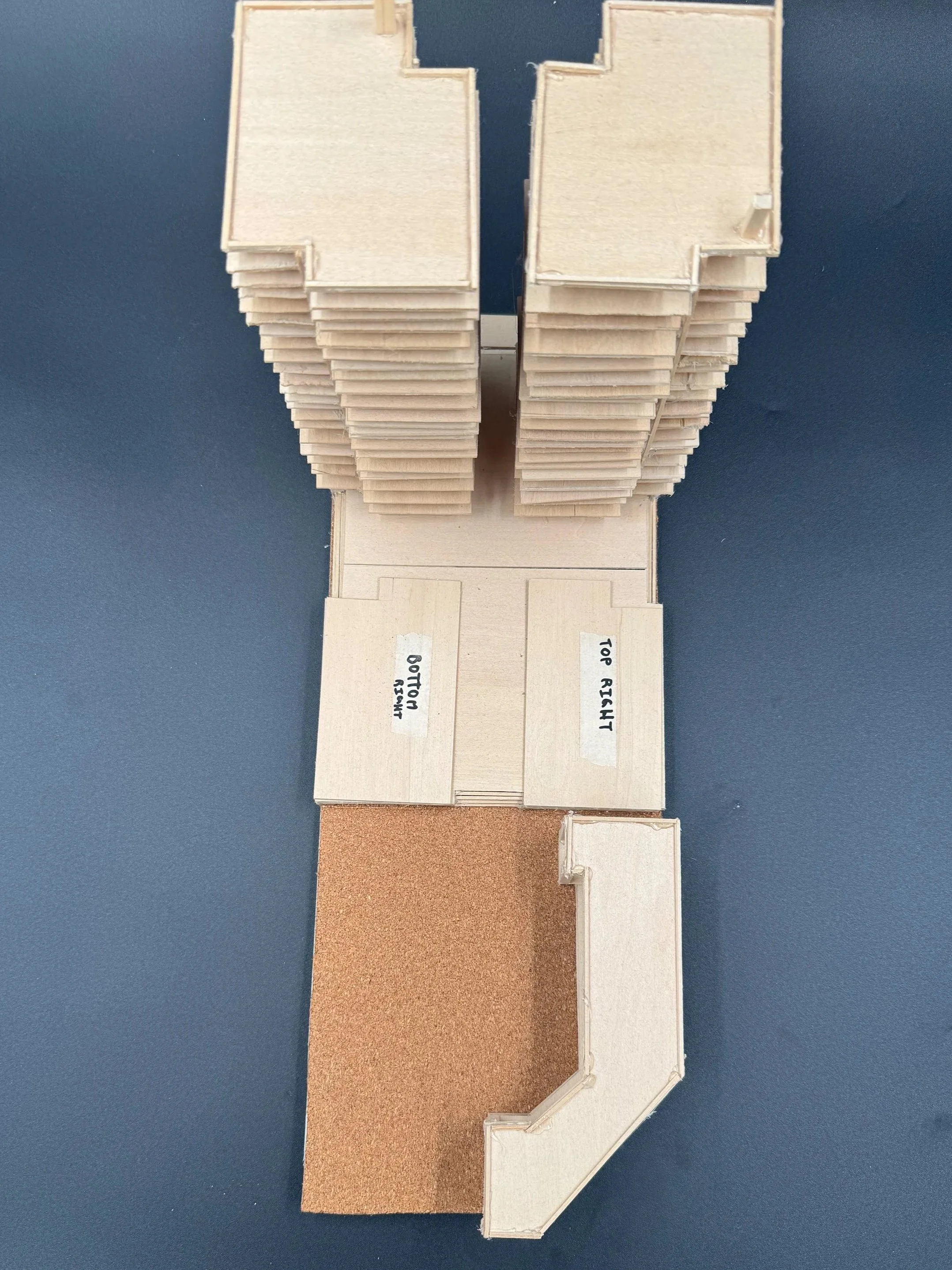 Balsa wood, foam board, cork board, hot glue, masking tape