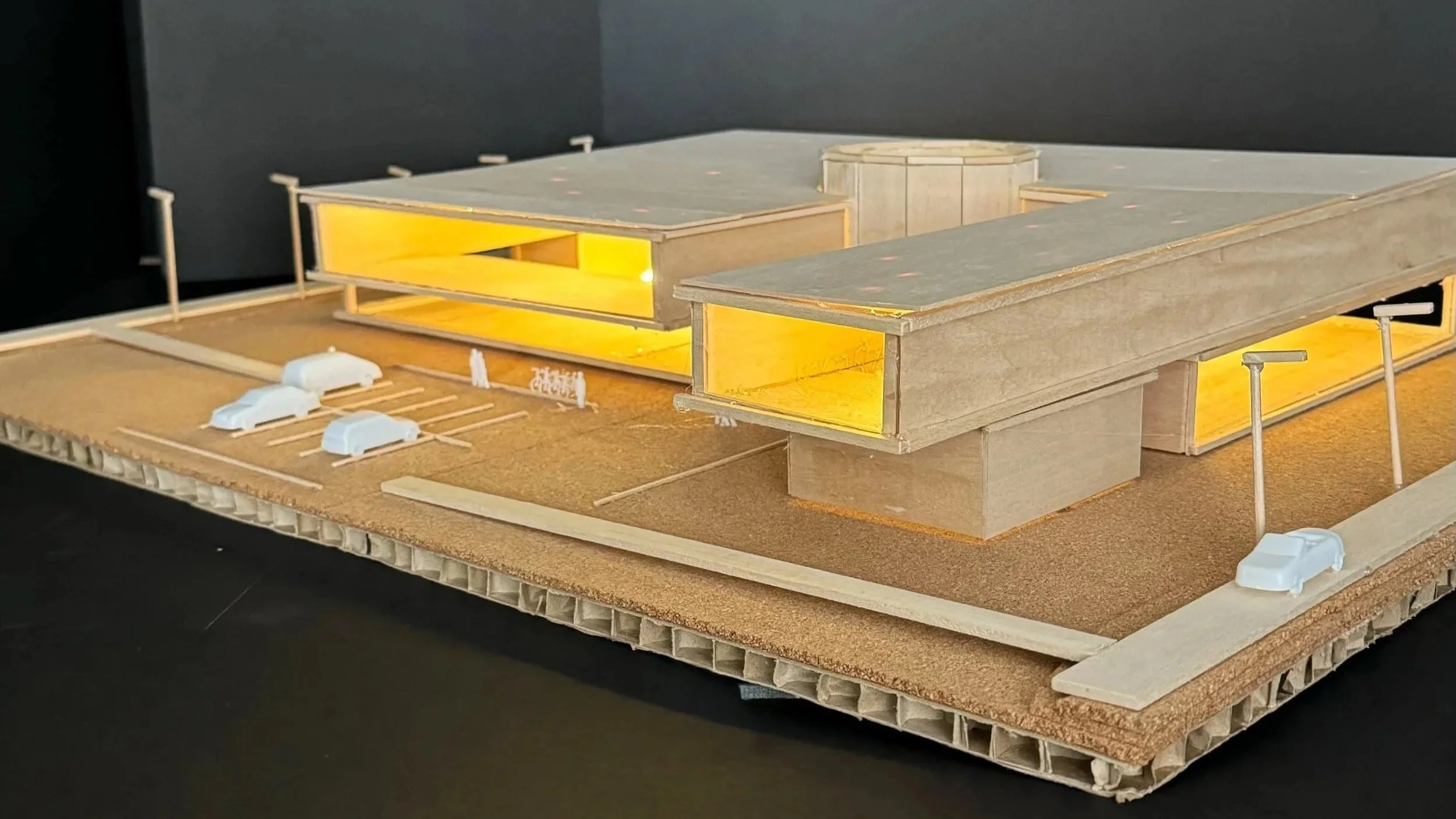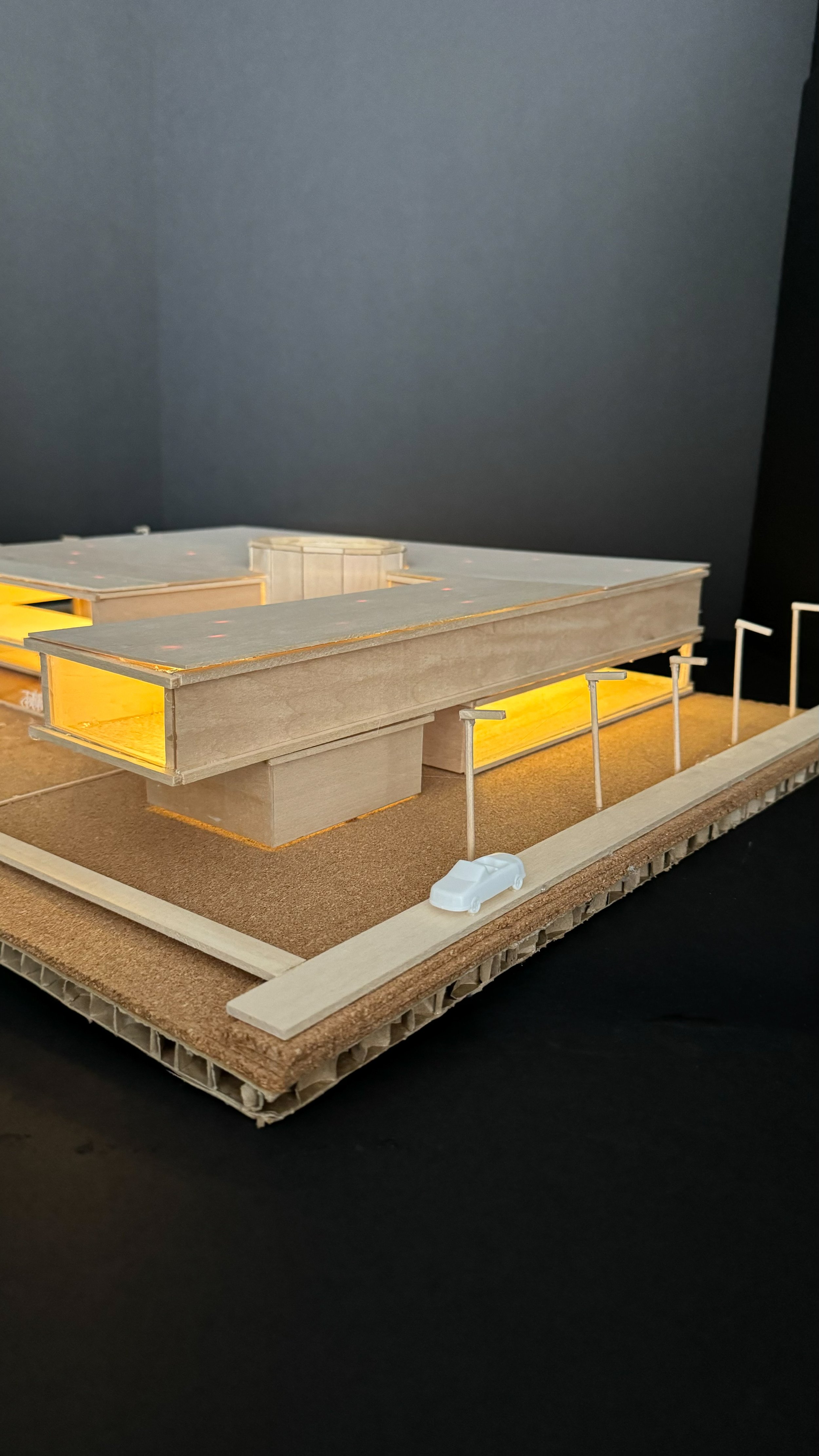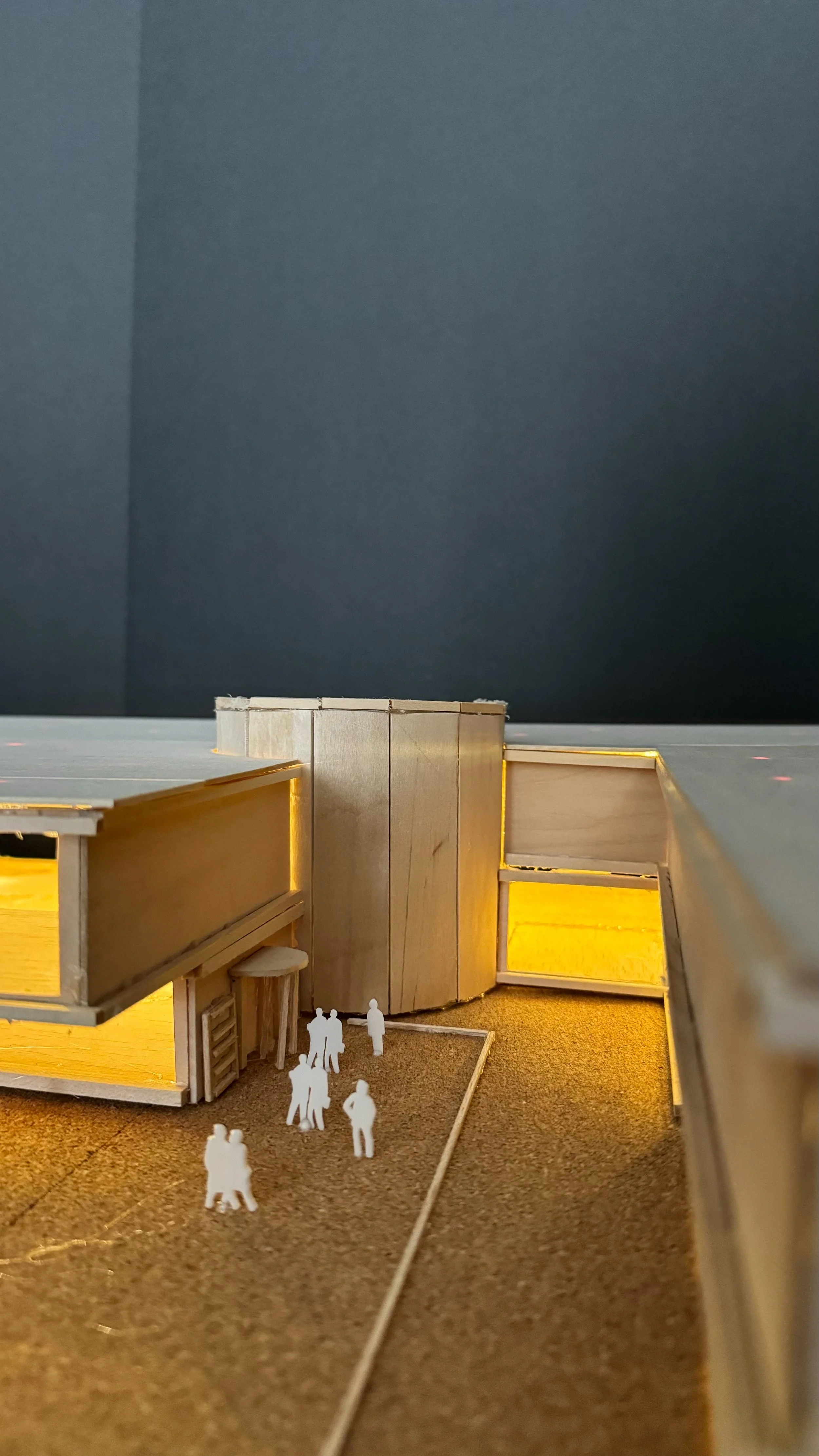 Balsa wood, led lights, cardboard, cork board, model cars & people