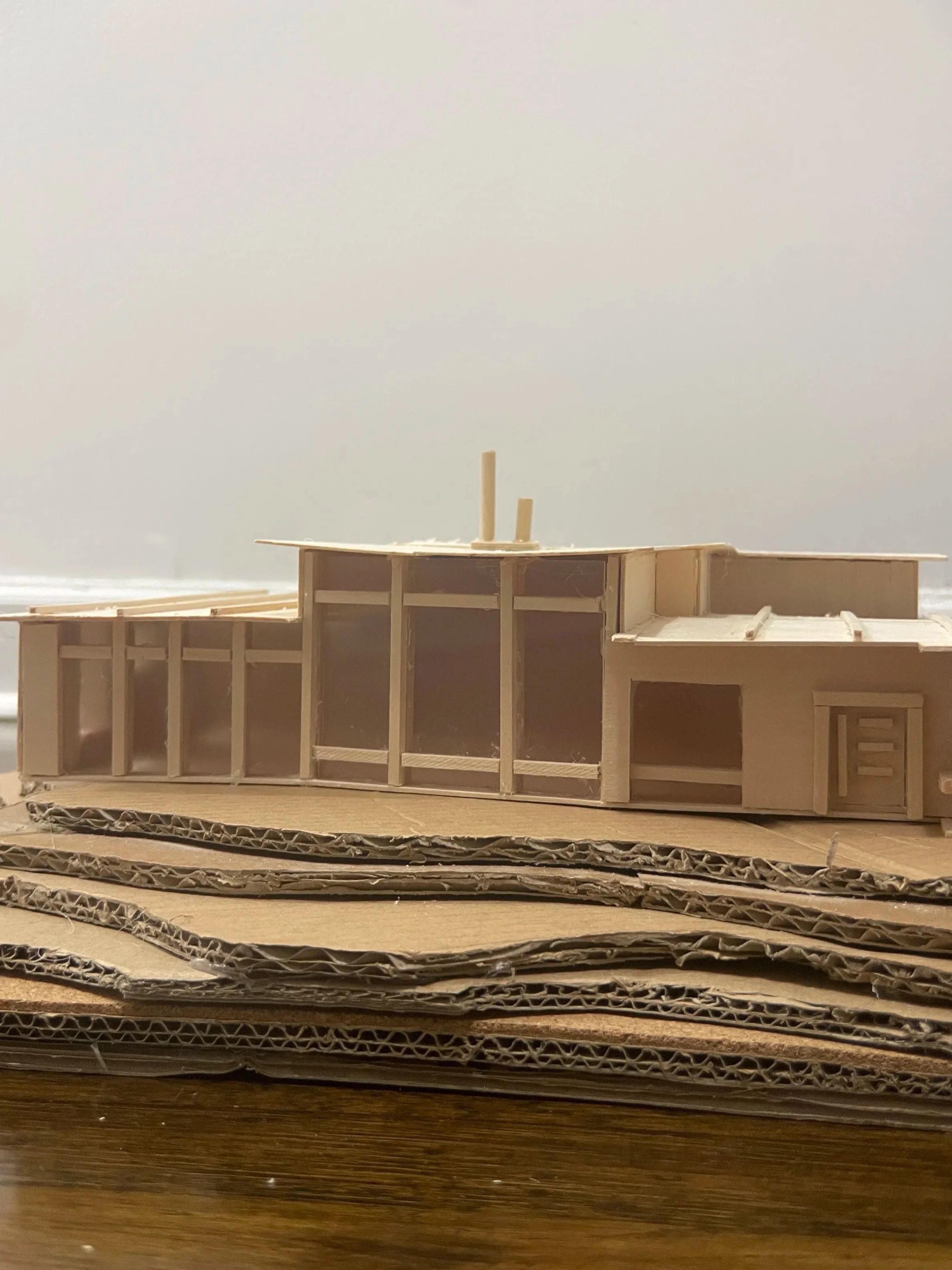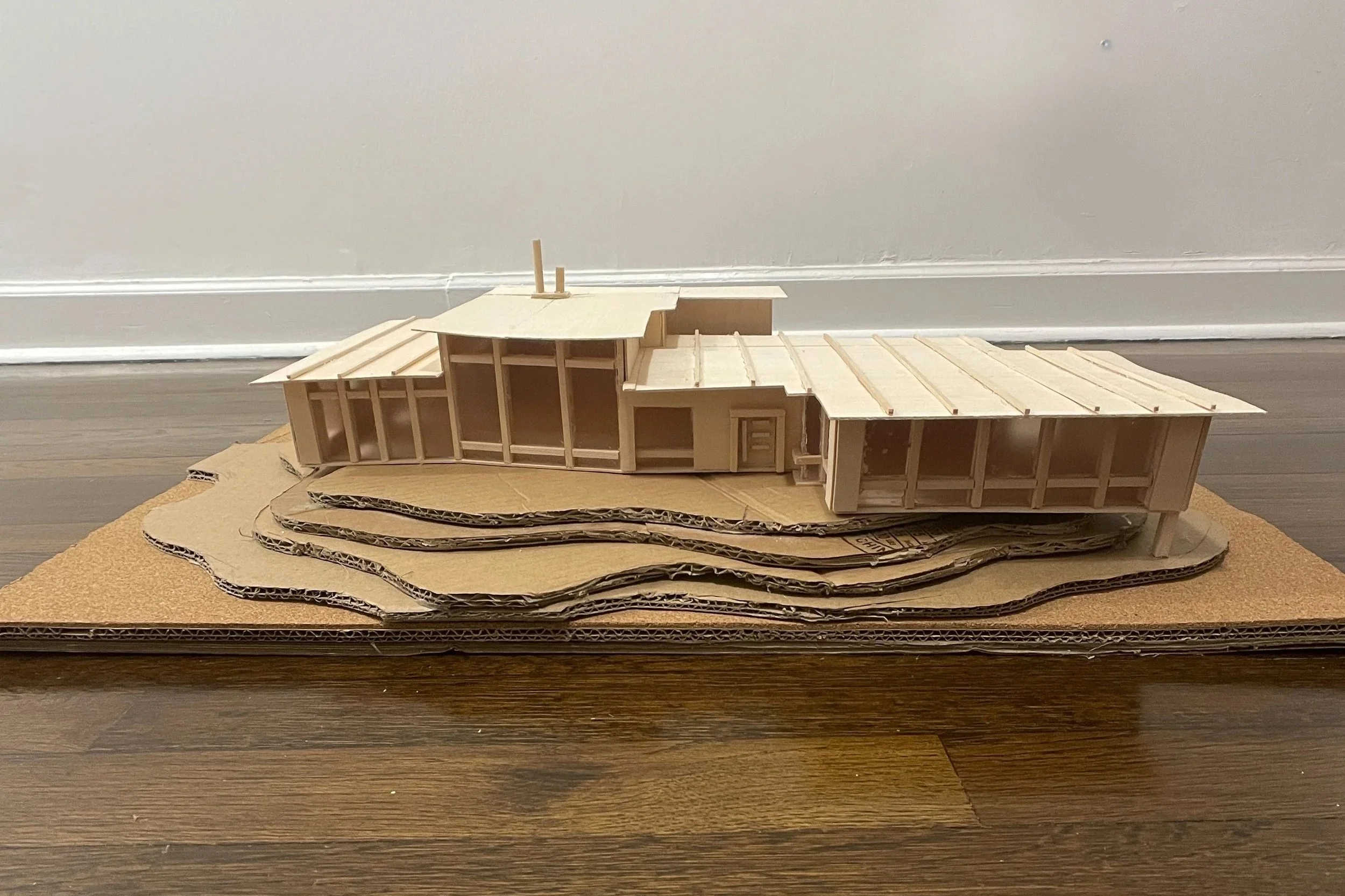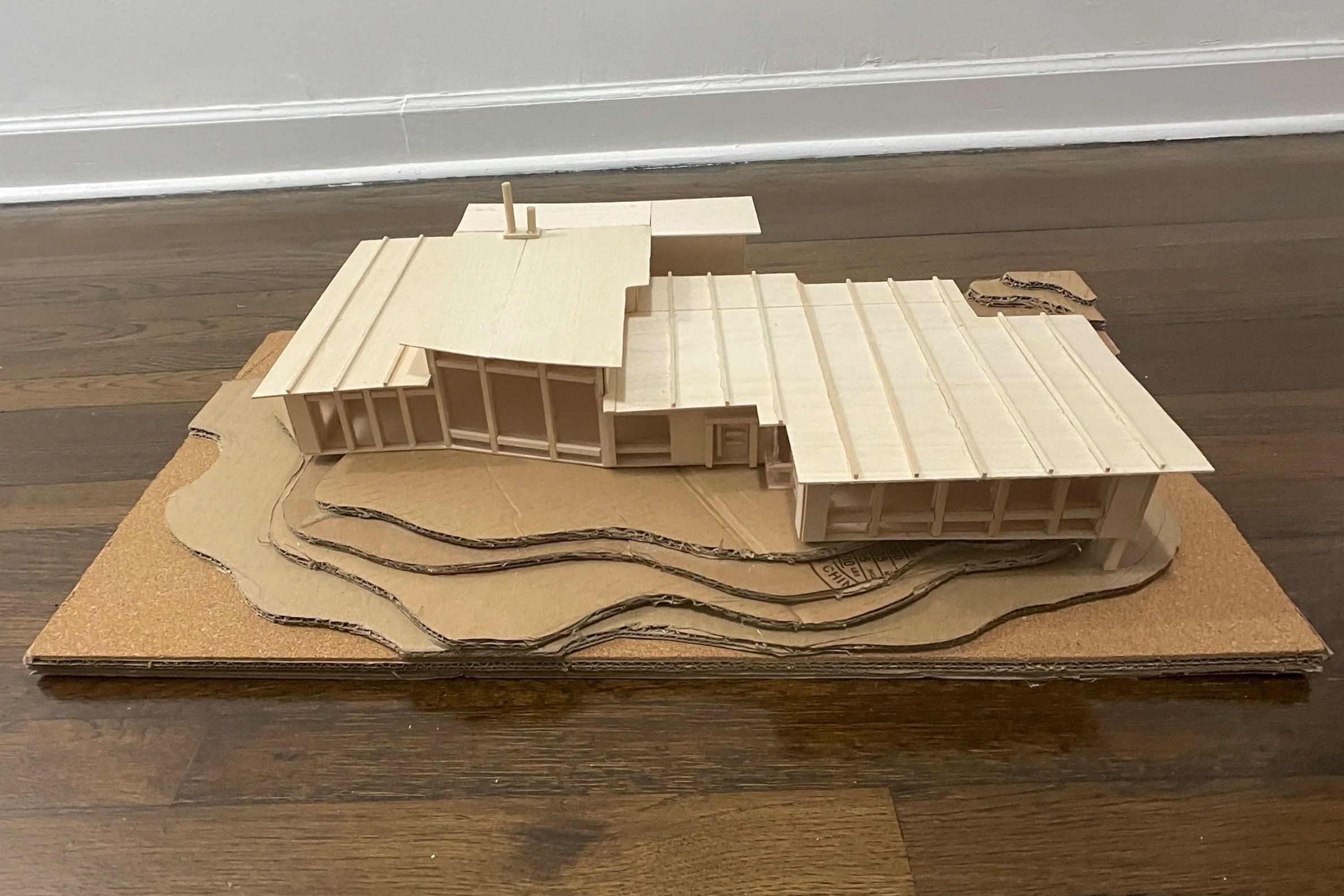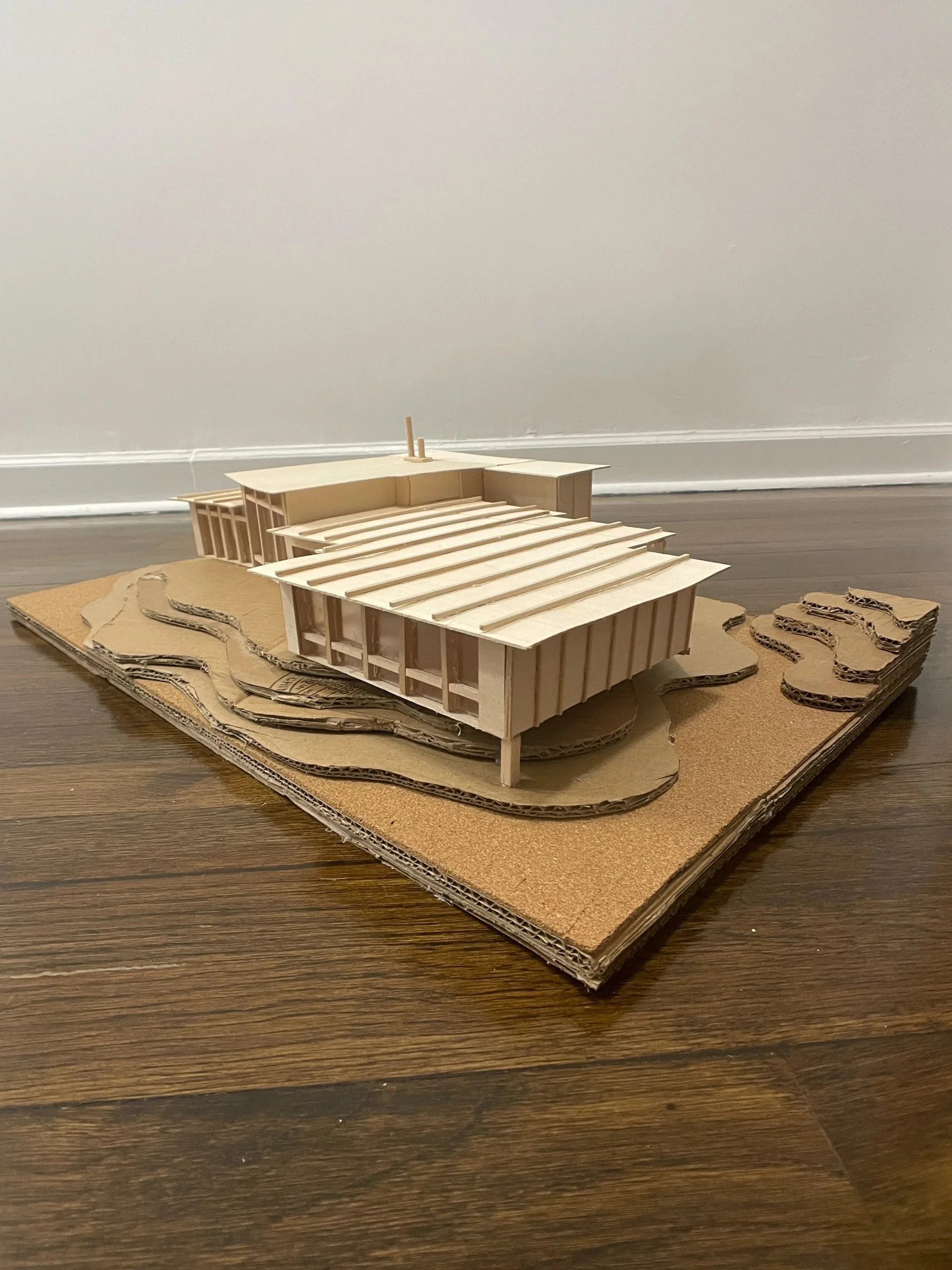 This project focuses on designing a 21st century bungalow tailored to a private family seeking a balance between seclusion, functionality, and modern living. The home is designed as a forest sited bungalow under 2,000 square feet and between 15 and 24 feet in height, emphasizing efficient spatial planning, strong indoor outdoor connections, and durable, contemporary materials. Informed by research into 20th century bungalow precedents, the design reinterprets traditional layouts through modern principles of light, flexibility, and sustainability. Special consideration is given to integrated garage space designed to accommodate a motorcycle collection and a single vehicle, while maintaining a warm, livable atmosphere suited for everyday family life. The final proposal includes conceptual sketches, material studies, foundation and wall section detailing, and a clear comparison between historic bungalow typologies and this updated, site responsive design.